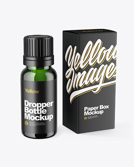 Green Glass Dropper Bottle with Box Mockup