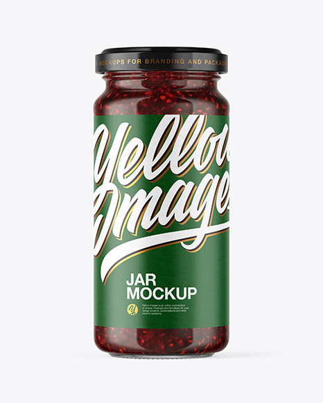 Clear Glass Raspberry Jam Jar Mockup